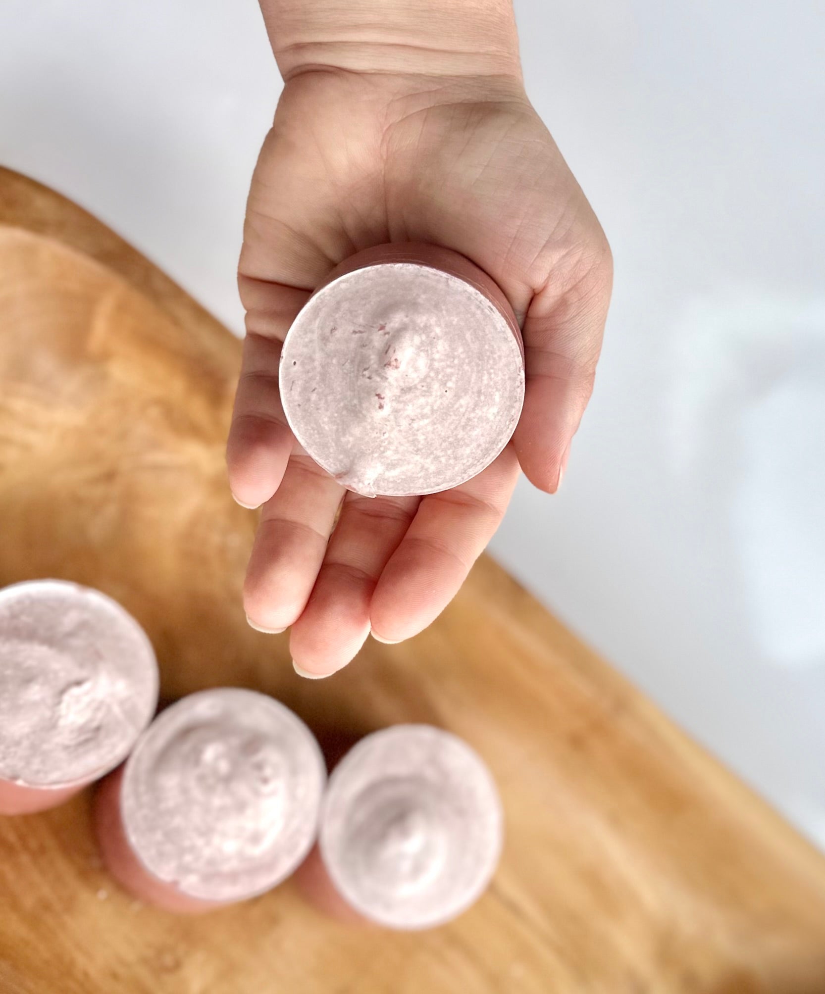 Ingredients: coconut oil, fine sea salt, coconut water, olive oil, sodium hydroxide, fragrance, kaolin clay, mica (iron oxide).