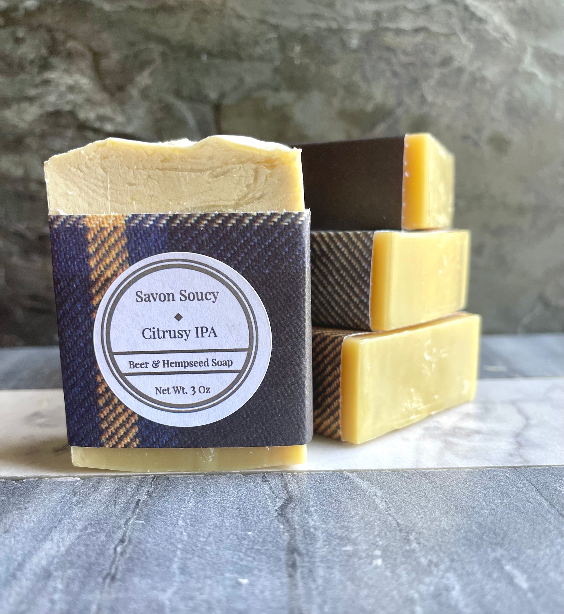 Clean Velvety Citrus IPA Beer Soap 3 Oz with Hempseed Oil, Cold Process Handmade Bar High Quality Food Grade Ingredients, Unisex Bath Gifts