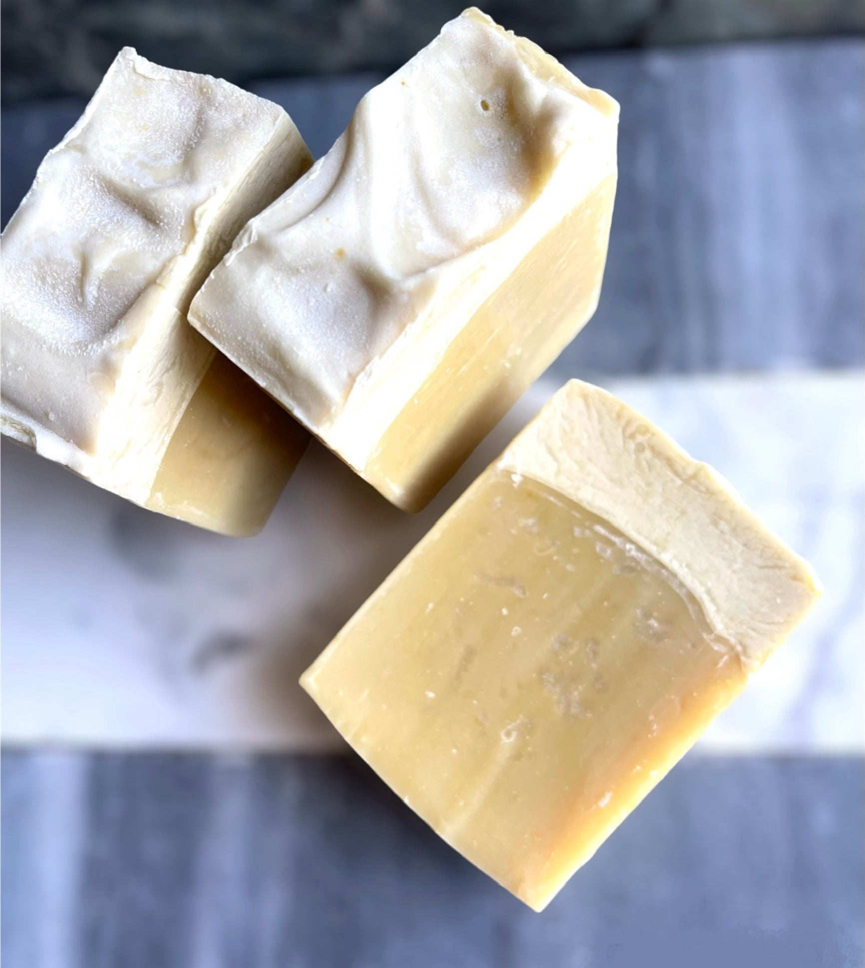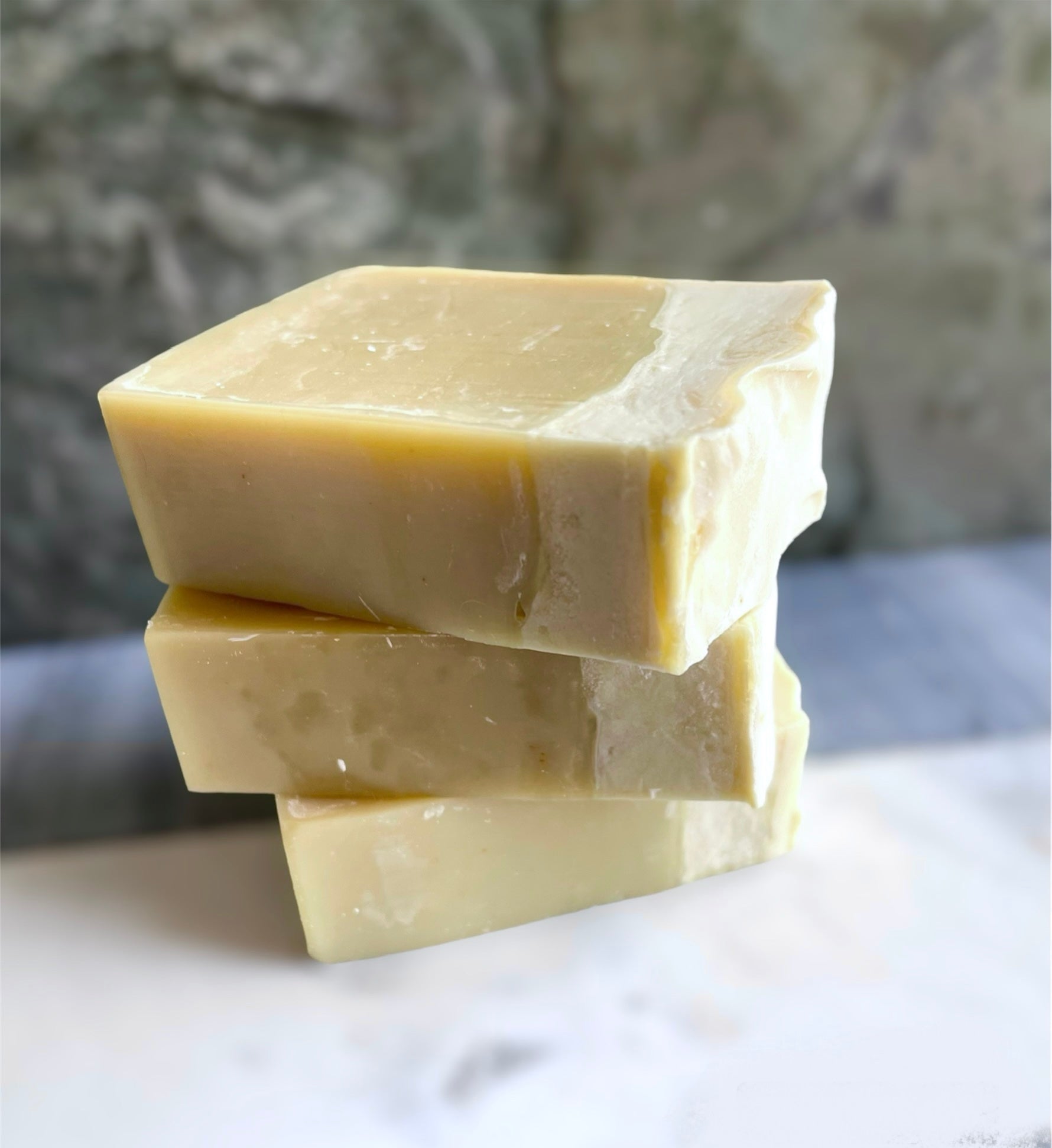 Cured, aged hard bar (1 piece) of cold process soap made with beer which adds bubbly leather.