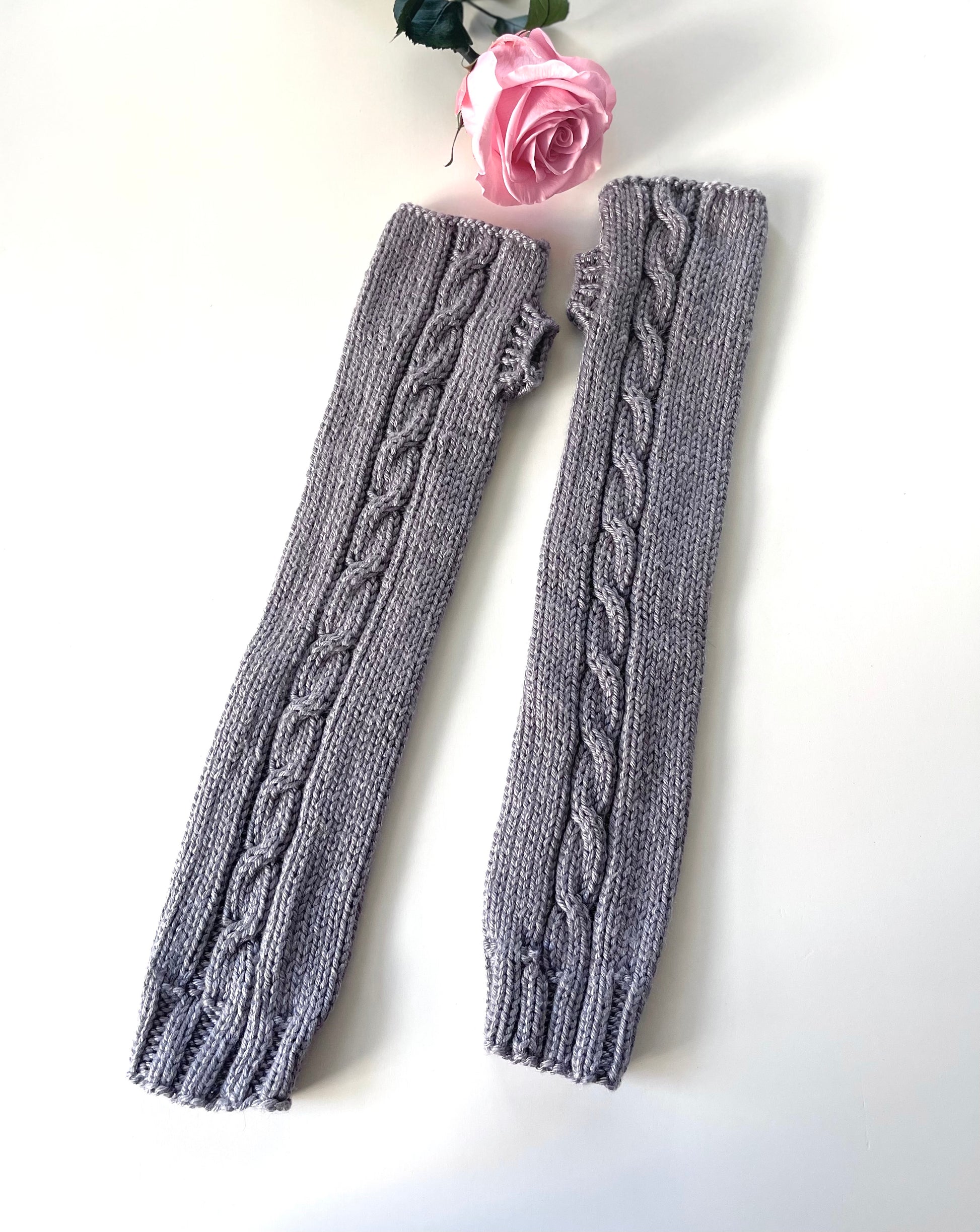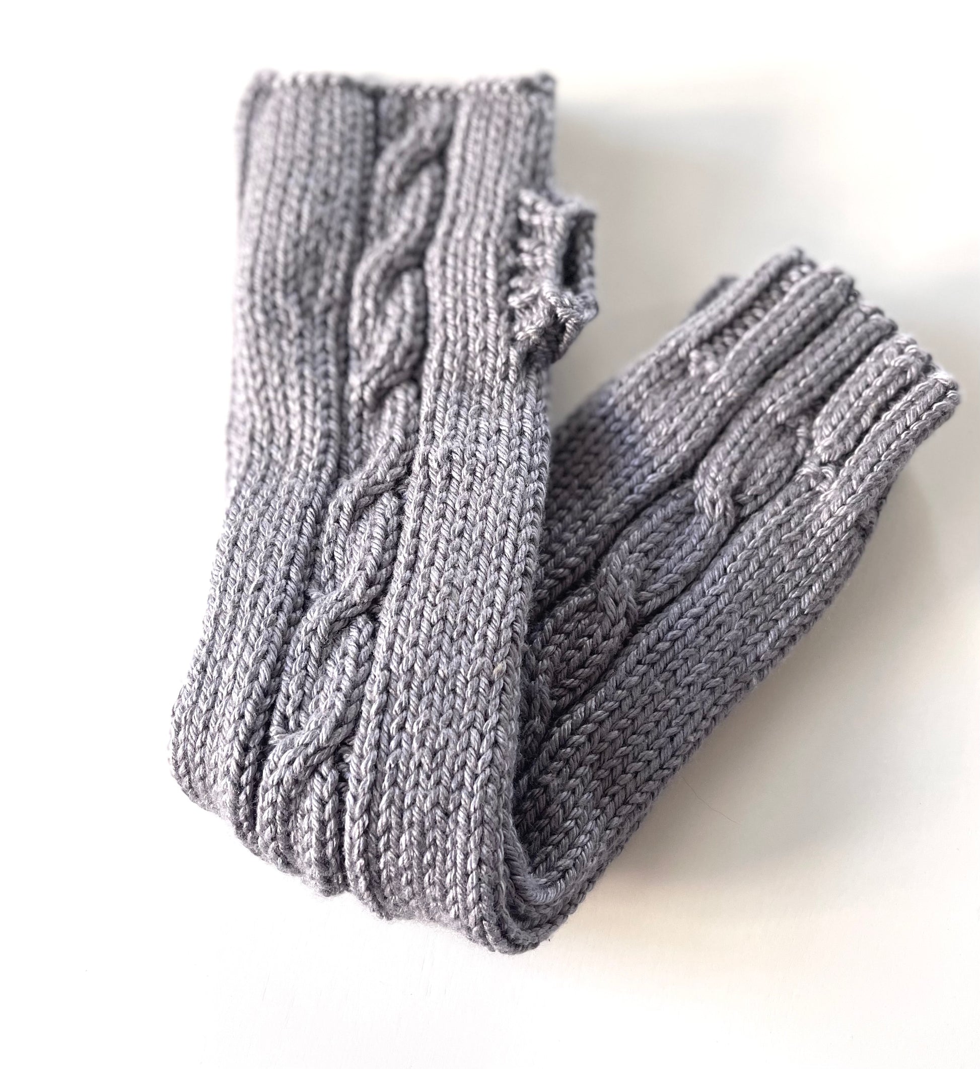 Kids Hand Knit Cable Arm Warmers in Koala Gray