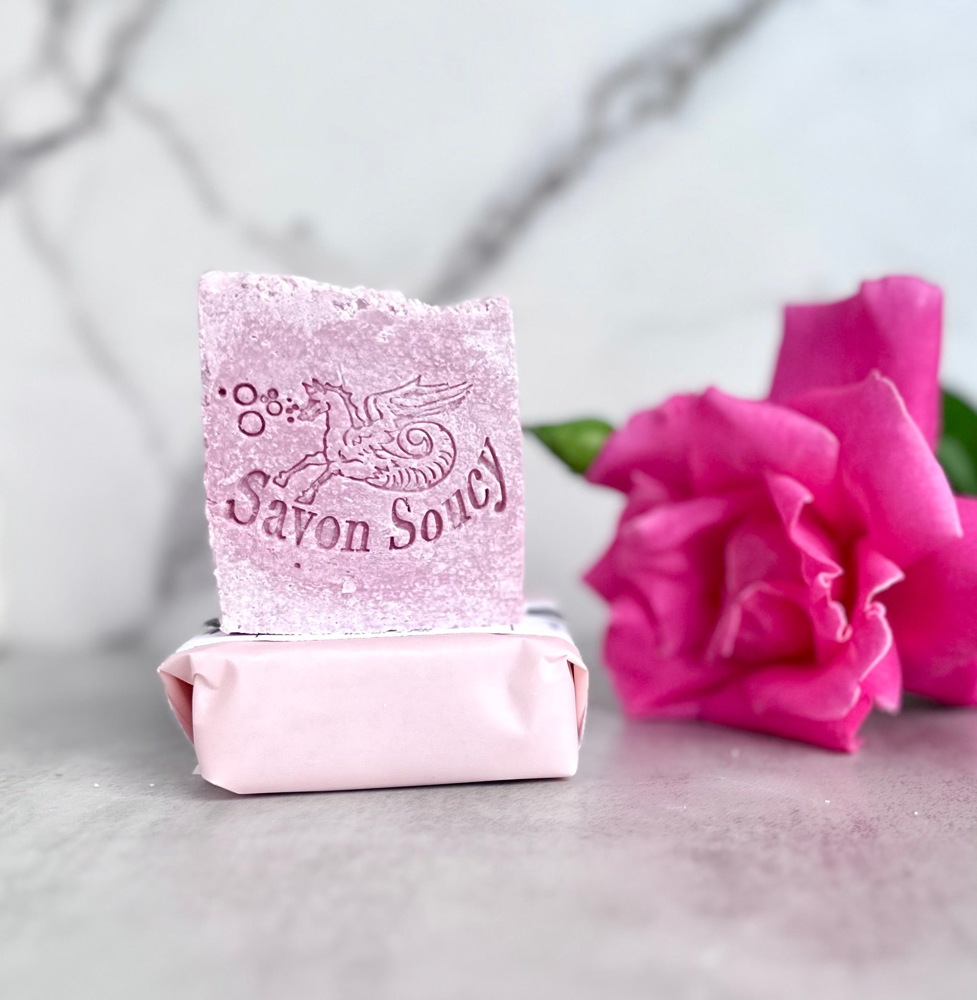 Rose Délicate, one (1) salt soap bar 3.2 oz Net Weight.