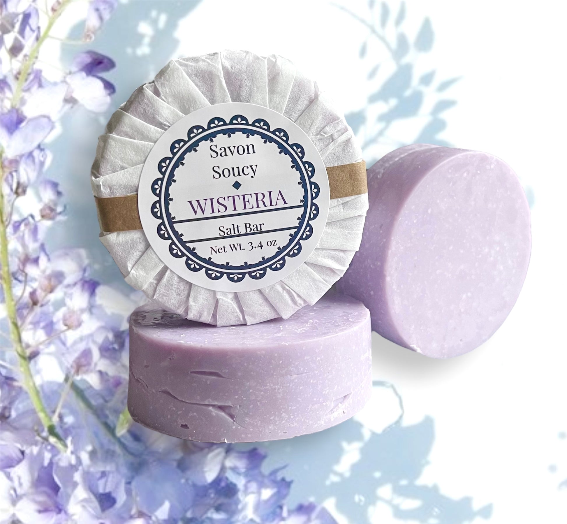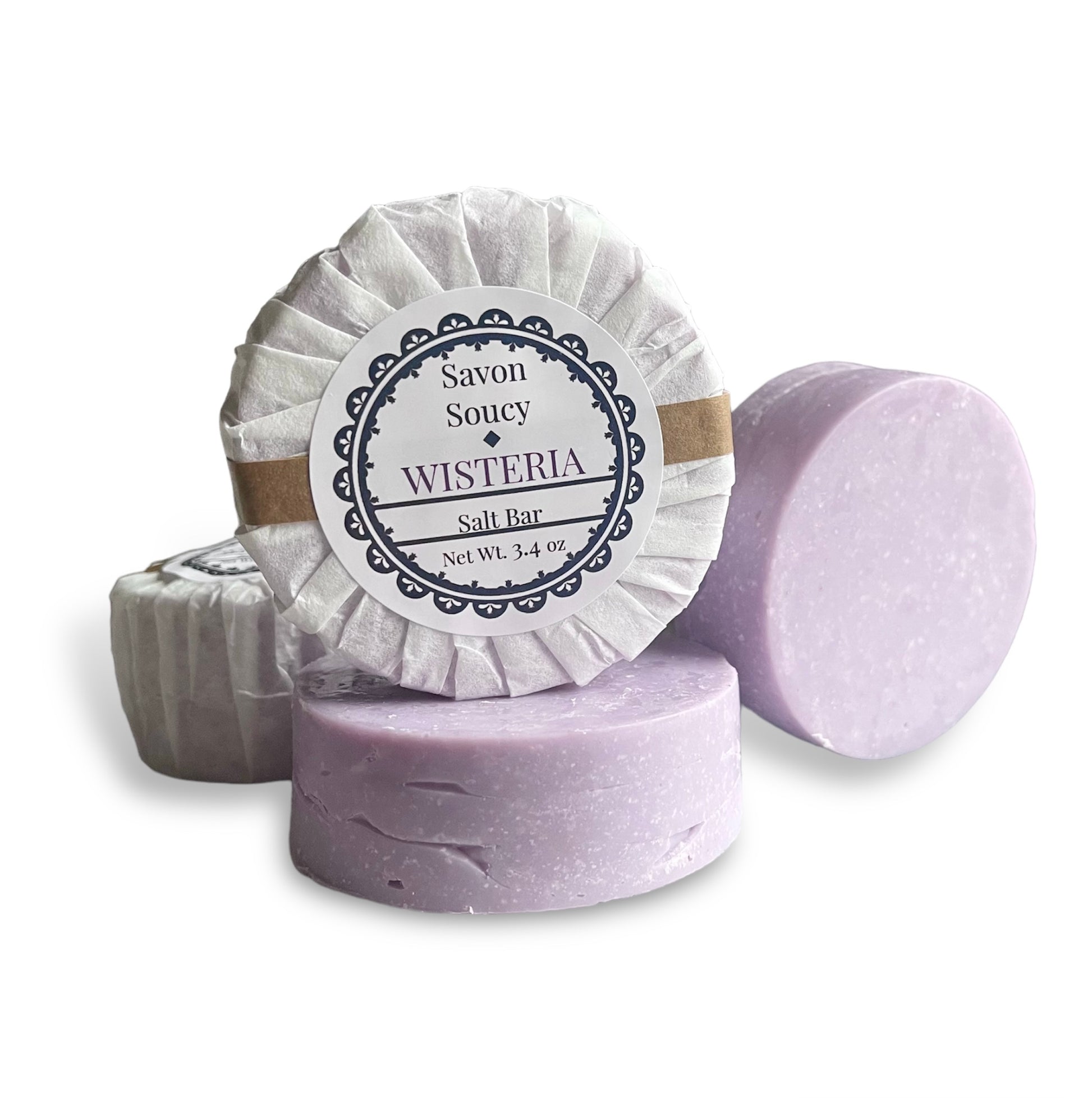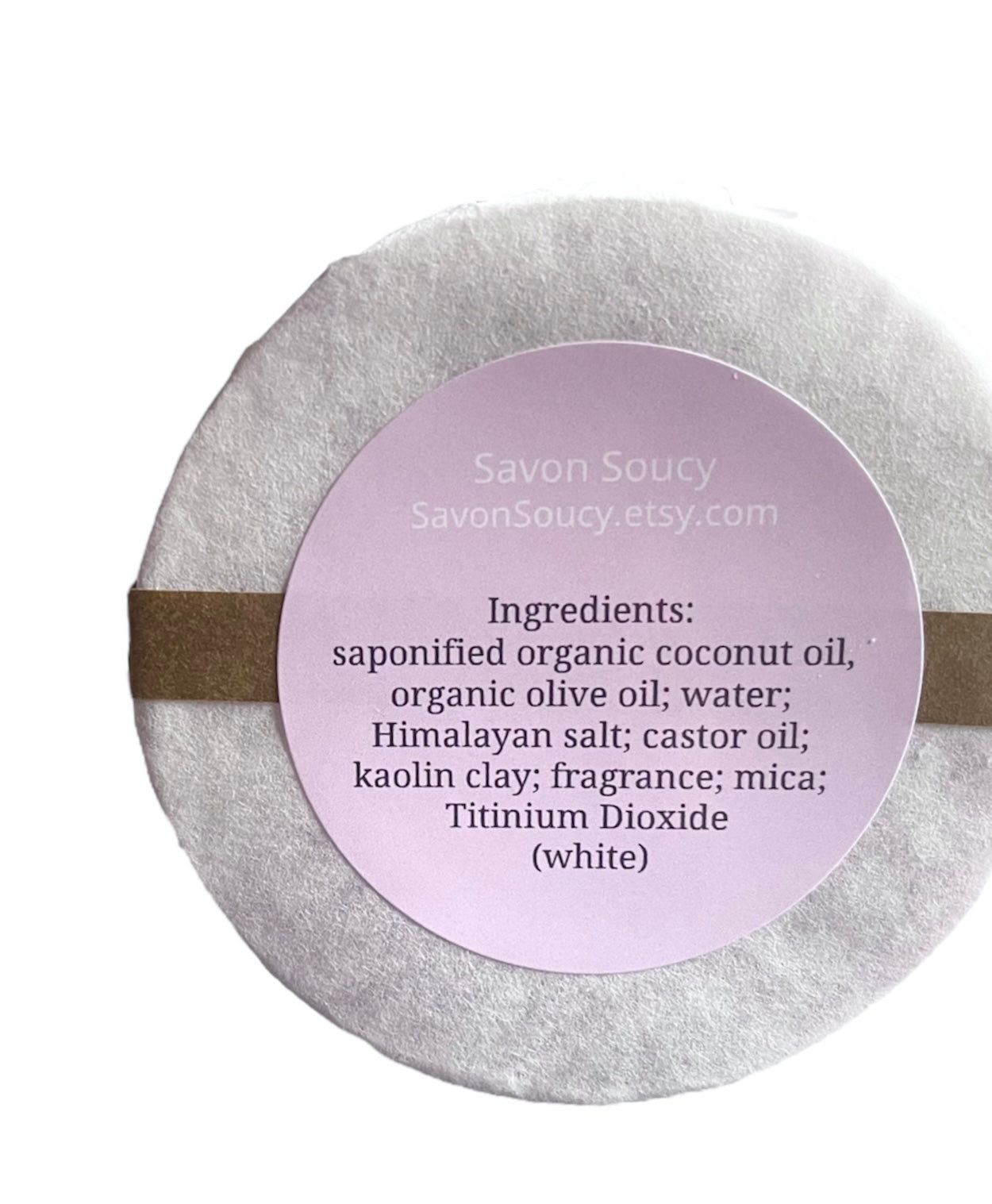 Wisteria Artisanal Scented Shower Bar with Himalayan Pink Salt, Cold Process Round Soap for Daily Bathtime Cleansing, Cute French Style