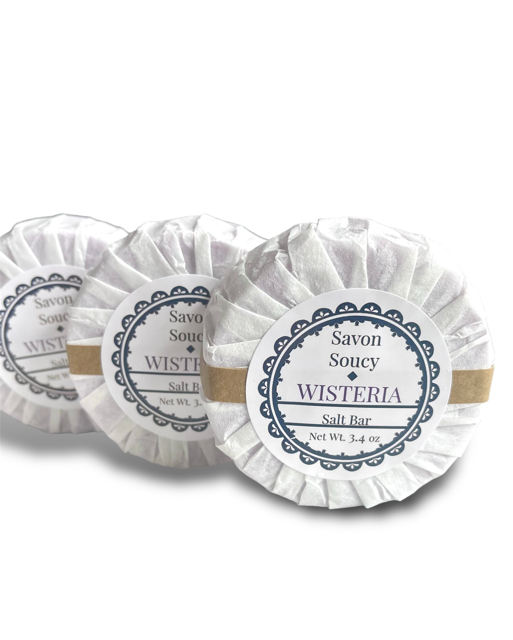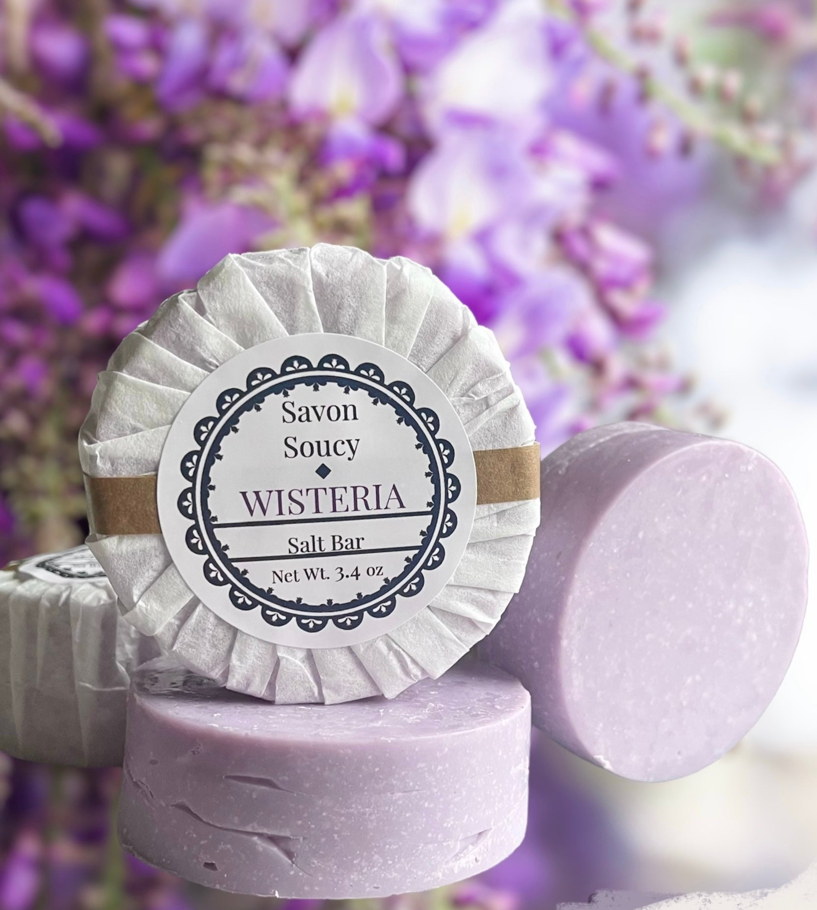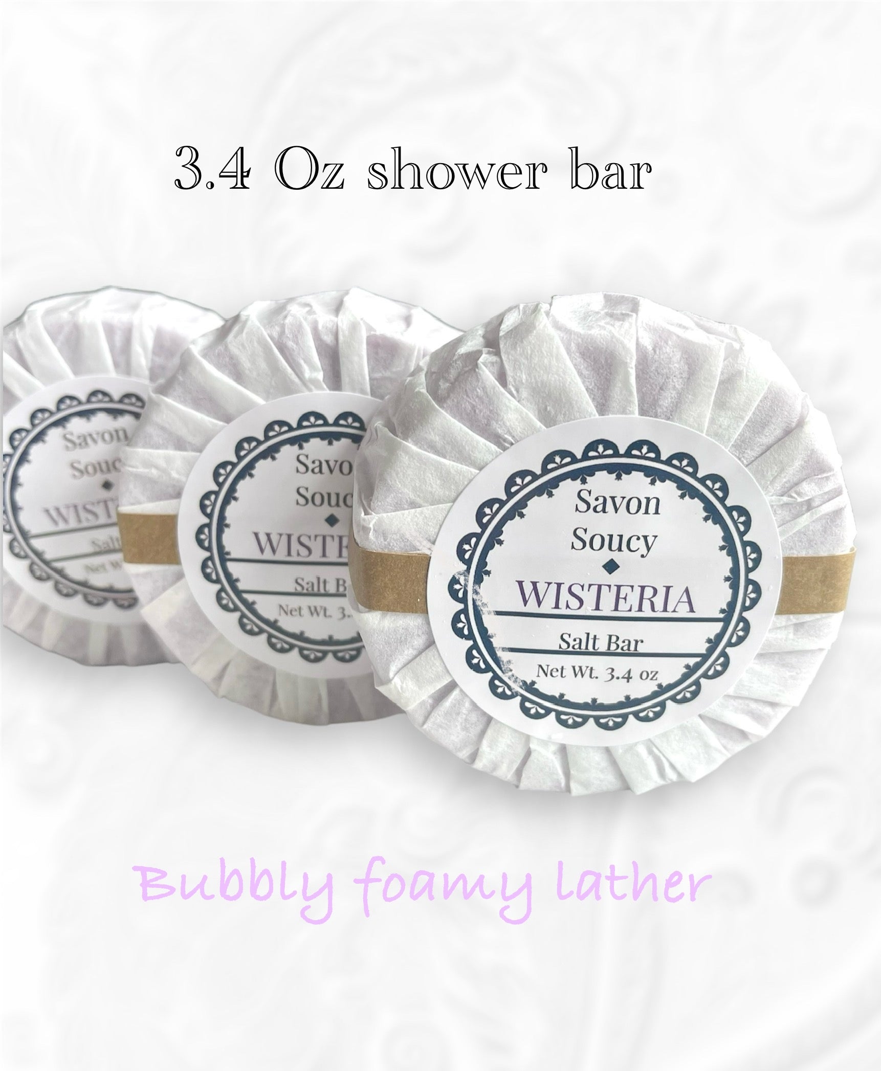 Wisteria Artisanal Scented Shower Bar with Himalayan Pink Salt, Cold Process Round Soap for Daily Bathtime Cleansing, Cute French Style